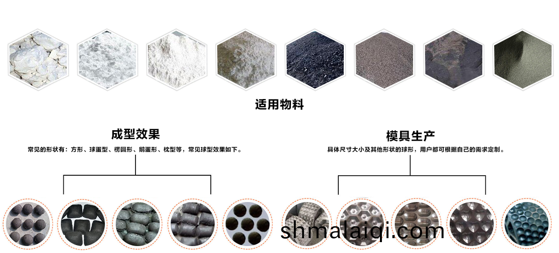 1.可對煤(mei)炭行業(ye)的(de)型煤(mei)、型(xing)焦(jiao)、焦煤(mei)毬等(deng)物料進(jin)行(xing)壓糰(tuan)或壓(ya)毬;